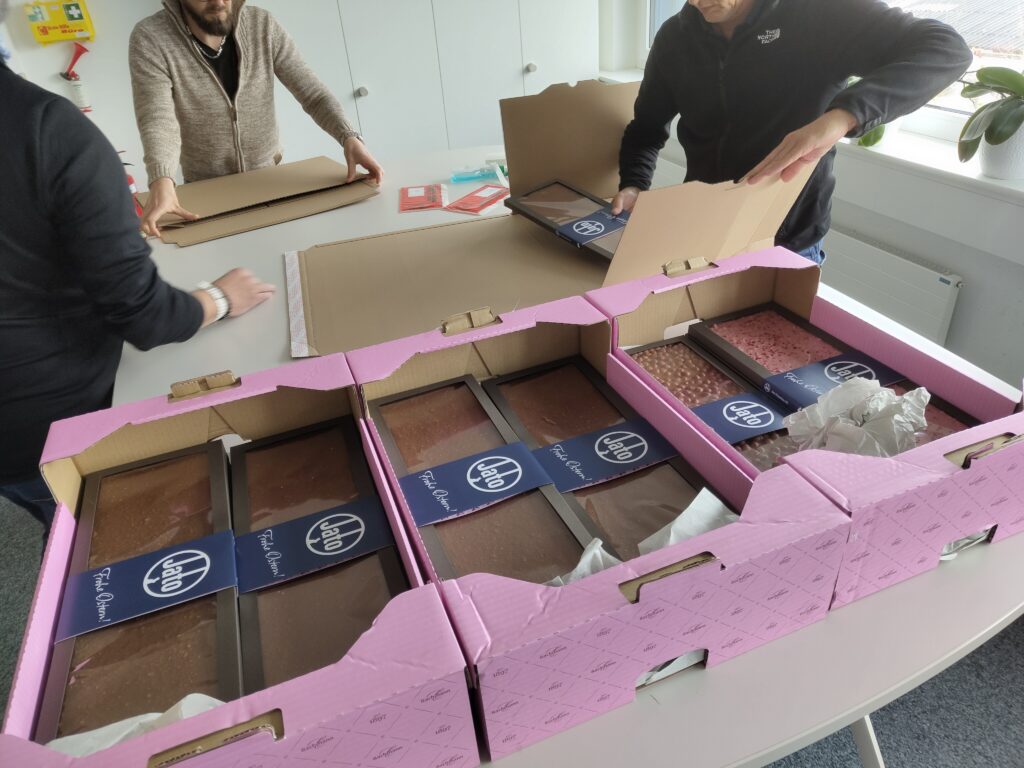 Dieses Jahr hatte der Osterhase schwer zu schleppen. Für das ganze Jato-Team gab es zu Ostern eine etwas grössere Tafel Schokolade. Die 60 XXL Tafeln der Confiserie Bachmann bringen ein stolzes Gewicht von 48Kg auf die Waage.